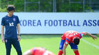 [OSEN=파주, 민경훈 기자] 21일 오후 경기도 파주시 파주 NFC(대표팀 트레이닝센터)에서 브라질 월드컵에서 사상 첫 원정 8강에 도전하는 축구 국가대표팀이 훈련을 할때 홍명보 감독이 손흥민의 상태를 보고 있다. 한편 대표팀은