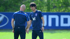 [OSEN=파주, 민경훈 기자] 21일 오후 경기도 파주시 파주 NFC(대표팀 트레이닝센터)에서 브라질 월드컵에서 사상 첫 원정 8강에 도전하는 축구 국가대표팀이 훈련을 할때 홍명보 감독이 안톤 두 샤트니에 코치와 얘기를 나누고 있