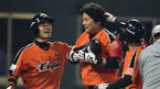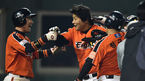 [OSEN=목동, 최규한 기자] 21일 오후 서울 목동구장에서 '2014 한국야쿠르트 세븐 프로야구' 넥센 히어로즈 대 한화 이글스의 경기가 열렸다. 9회초 한화 공격 만루 상황 김태균이 우월 만루포를 날리고 홈을 밟은 뒤 더그아웃 동료