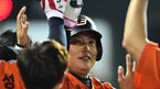 [OSEN=목동, 최규한 기자] 21일 오후 서울 목동구장에서 '2014 한국야쿠르트 세븐 프로야구' 넥센 히어로즈 대 한화 이글스의 경기가 열렸다. 9회초 한화 공격 1사 만루 상황 김태균이 우월 만루포를 날리고 홈을 밟은 뒤 동료들과