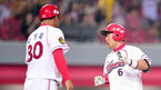 [OSEN=목동, 민경훈 기자] 22일 오후 서울 목동구장에서 열린 ‘2014 한국야쿠르트 세븐 프로야구’ 넥센 히어로즈와 한화 이글스의 경기, 8회초 한화 선두타자 정범모가 우월 솔로 홈런을 날린 후 덕아웃에서 동료들과 하이파이