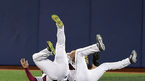 [OSEN=목동, 민경훈 기자] 22일 오후 서울 목동구장에서 열린 ‘2014 한국야쿠르트 세븐 프로야구’ 넥센 히어로즈와 한화 이글스의 경기, 7회초 2사 주자 1,2루 한화 고동진의 플라이 타구를 처리하는 과정에서 넥센 강지광과 이택