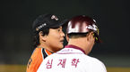 [OSEN=목동, 민경훈 기자] 22일 오후 서울 목동구장에서 열린 ‘2014 한국야쿠르트 세븐 프로야구’ 넥센 히어로즈와 한화 이글스의 경기, 6회초 2사 주자 2,3루 한화 김경언의 2타점 적시타때 홈을 밟은 김태균과송광민이 덕아웃에