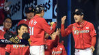 [OSEN=창원, 곽영래 기자] 22일 오후 창원 마산구장에서 '2014 한국야쿠르트 세븐 프로야구' NC 다이노스와 SK 와이번스의 경기가 열렸다. 8회초 2사 1,3루 SK 안정광이 이재원의 안타로 득점을 올린 뒤 동료들과 기뻐하고 있다. NC는