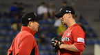 [OSEN=창원, 곽영래 기자] 22일 오후 창원 마산구장에서 '2014 한국야쿠르트 세븐 프로야구' NC 다이노스와 SK 와이번스의 경기가 열렸다. 7회말 1사 1루 NC 박정준의 타석때 SK 이만수 감독이 마운드에 올라 울프와 이야기를 나누고 있