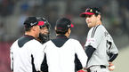 [OSEN=광주, 이대선 기자] 22일 오후 광주-KIA챔피언스필드에서 '2014 한국야쿠르트 세븐 프로야구' KIA 타이거즈와 LG 트윈스의 경기가 열렸다. 3회말 무사 만루에서 마운드를 방문한 LG 강상수 코치가 리오단과 이야기를 나누고 있