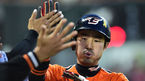 [OSEN=목동, 민경훈 기자] 22일 오후 서울 목동구장에서 열린 ‘2014 한국야쿠르트 세븐 프로야구’ 넥센 히어로즈와 한화 이글스의 경기, 4회초 2사 주자 1,2루 한화 정근우의 좌익수 뒤 2타점 적시타 때 홈을 밟은 한상훈이 덕아웃
