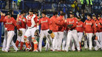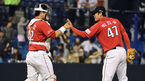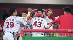 [OSEN=광주, 이대선 기자] 22일 오후 광주-KIA챔피언스필드에서 '2014 한국야쿠르트 세븐 프로야구' KIA 타이거즈와 LG 트윈스의 경기가 열렸다. 9회말 KIA 백용환이 우월 솔로 홈런을 치고 더그아웃에서 동료들의 축하를 받고 있다. LG