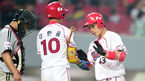 [OSEN=광주, 이대선 기자] 22일 오후 광주-KIA챔피언스필드에서 '2014 한국야쿠르트 세븐 프로야구' KIA 타이거즈와 LG 트윈스의 경기가 열렸다. 9회말 KIA 백용환이 우월 솔로 홈런을 치고 홈에서 강한울과 하이파이브를 하고 있다. LG