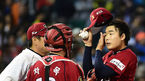 [OSEN=대구, 이대선 기자] 23일 오후 대구시민운동장야구장에서 '2014 한국야쿠르트 세븐 프로야구' 삼성 라이온즈와 넥센 히어로즈의 경기가 열렸다. 1회초 경기 도중 손가락을 다친 넥센 이택근이 팀관계자의 치료를 받고 있다.