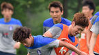 [OSEN=파주, 지형준 기자] 24일 오후 경기도 파주 NFC(대표팀 트레이닝센터)에서 브라질 월드컵에서 사상 첫 원정 8강에 도전하는 축구 국가대표팀이 훈련을 가졌다. 기성용, 박주영이 미니게임 벌칙을 받는 이청용에 똑바로 하라