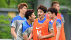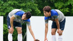 [OSEN=파주, 지형준 기자] 24일 오후 경기도 파주 NFC(대표팀 트레이닝센터)에서 브라질 월드컵에서 사상 첫 원정 8강에 도전하는 축구 국가대표팀이 훈련을 가졌다. 지동원, 박주영이 벌칙받는 이청용에 똑바로 할 것을 요구하고