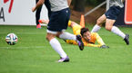 [OSEN=파주, 지형준 기자] 24일 오후 경기도 파주 NFC(대표팀 트레이닝센터)에서 브라질 월드컵에서 사상 첫 원정 8강에 도전하는 축구 국가대표팀이 훈련을 가졌다. 김승규가 패스로 지나친 볼을 바라보고 있다. 홍명보 감독이 이