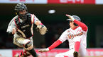 [OSEN=인천, 이대선 기자] 25일 오후 인천 문학야구장에서 '2014 한국야쿠르트 세븐 프로야구' SK 와이번스와 LG 트윈스의 경기가 열렸다. 8회말 1사 2,3루에서 SK 박정권의 희생플라이때 3루주자 김재현이 태그업을 시도. 홈에서 득점