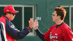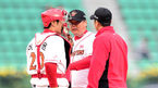 [OSEN=인천, 이대선 기자] 25일 오후 인천 문학야구장에서 '2014 한국야쿠르트 세븐 프로야구' SK 와이번스와 LG 트윈스의 경기가 열렸다. 1회말 무사 1,2루에서 볼넷으로 출루한 SK 스캇이 백재호 코치를 바라보고 있다. LG는 SK와 시