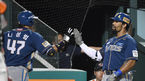 [OSEN=대전,김영민기자] 27일 오후 대전 한밭야구장에서 열린 '2014 한국야쿠르트 세븐 프로야구' 한화 이글즈와 NC 다이노스 경기,5회초 2사 2,3루 나성범 스리런 홈런을 날리고 홈인 테임즈의 축하를 받고 있다. 한화는 우완 이태양