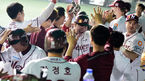 [OSEN=잠실, 최규한 기자] 28일 오후 서울 잠실야구장에서 '2014 한국야쿠르트 세븐 프로야구' LG 트윈스와 삼성 라이온즈의 경기가 열렸다. 8회초 삼성 공격 2사 1, 2루 상황 이승엽이 역전 우월 스리런포를 날리고 홈을 밟은 뒤 더