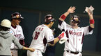 [OSEN=목동, 지형준 기자] 28일 오후 서울 목동야구장에서 '2014 한국야쿠르트 세븐 프로야구' 넥센 히어로즈와 SK 와이번스의 경기가 열렸다. 8회말 2사 만루에서 넥센 강정호가 역전 만루 홈런을 날리고 홈을 밟으며 박병호와 기