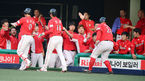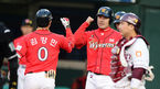 [OSEN=목동, 지형준 기자] 28일 오후 서울 목동야구장에서 '2014 한국야쿠르트 세븐 프로야구' 넥센 히어로즈와 SK 와이번스의 경기가 열렸다. 3회초 2사 1,2루에서 SK 김강민이 시즌 9호 선제 스리런를 날리고 이만수 감독과 하이파