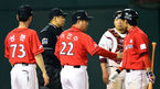 [OSEN=목동, 정송이 기자] 29일 오후 서울 목동야구장에서 '2014 한국야쿠르트 세븐 프로야구' 넥센 히어로즈와 SK 와이번스의 경기가 열렸다. 6회초 1사 1, 2루 타석 조동화가 김귀한 구심의 볼판정에 불만을 품자 이만수 감독이 나