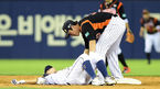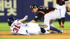[OSEN=잠실, 이대선 기자] 30일 오후 서울 잠실야구장에서 '2014 한국야쿠르트 세븐 프로야구' 두산 베어스와 롯데 자이언츠의 경기가 열렸다. 6회말 2사에서 두산 정수빈이 좌중간 안타를 치고 2루로 쇄도했으나 롯데 정훈에 의해