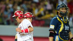 [OSEN=목동, 곽영래 기자] 29일 오후 목동야구장에서 '2014 한국야쿠르트 세븐 프로야구' 넥센 히어로즈와 LG 트윈스의 경기가 열렸다. LG 최경철과 정현욱이 4회말 수비를 마치고 이야기를 나누고 있다. 넥센은 LG전 3연전 첫 경기