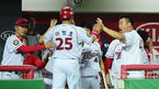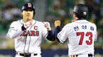 [OSEN=잠실, 이대선 기자] 30일 오후 서울 잠실야구장에서 '2014 한국야쿠르트 세븐 프로야구' 두산 베어스와 롯데 자이언츠의 경기가 열렸다. 5회말 2사 3루에서 두산 김현수가 중전 적시타를 치고 전상렬 코치와 하이파이브를 하
