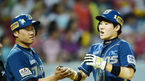 [OSEN=잠실, 이대선 기자] 30일 오후 서울 잠실야구장에서 '2014 한국야쿠르트 세븐 프로야구' 두산 베어스와 롯데 자이언츠의 경기가 열렸다. 경기 종료 후 롯데 히메네스가 두산 선수들과 이야기를 나누고 있다. 두산은 우완 더스