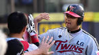 [OSEN=목동, 이대선 기자] 31일 오후 서울 목동야구장에서 '2014 한국야쿠르트 세븐 프로야구' 넥센 히어로즈와 LG 트윈스의 경기가 열렸다. 5회말 2사 2루에서 LG 김용의의 적시타때 홈을 밟은 2루주자 최경철이 더그아웃에서 동료들