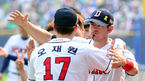 [OSEN=잠실, 정송이 기자] 31일 오후 서울 잠실야구장에서 '2014 한국야쿠르트 세븐 프로야구' 두산 베어스와 롯데 자이언츠의 경기가 열렸다. 경기에 앞서, 사이클링 히트 기념 시상식을 끝낸 오재원이 칸투와 포옹을 나누고 있다.