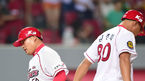 [OSEN=광주, 민경훈 기자] 31일 오후 광주-KIA 챔피언스필드에서 열린 2014 한국야쿠르트 세븐 프로야구 KIA 타이거즈와 NC 다이노스의 경기, 9회말 KIA 선두타자 이종환이 우월 솔로홈런을 날린 후 덕아웃에서 선동렬 감독과 하이파