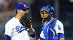 [OSEN=다저스타디움(미국 캘리포니아주 LA), 백승철 기자] 31일(이하 한국시간) 미국 캘리포니아주 로스앤젤레스 다저스타디움에서 열린 '2014 메이저리그' LA 다저스와 피츠버그 파이어리츠의 경기 시작전 유리베와 류현진이 장난