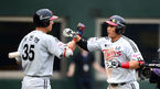 [OSEN=잠실, 최규한 기자] 1일 오후 서울 잠실야구장에서 '2014 한국야쿠르트 세븐 프로야구' 두산 베어스와 롯데 자이언츠의 경기가 열렸다. 3회초 롯데 공격 2사 만루 상황 정훈의 적시 2타점 좌측 2루타 때 홈을 밟은 문규현과 강