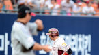[OSEN=잠실, 최규한 기자] 1일 오후 서울 잠실야구장에서 '2014 한국야쿠르트 세븐 프로야구' 두산 베어스와 롯데 자이언츠의 경기가 열렸다. 3회초 롯데 공격 2사 주자없는 상황 황재균 타석 때 두산 유격수 김재호가 두통을 호소