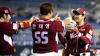 [OSEN=창원, 지형준 기자] 3일 오후 창원시 마산구장에서 '2014 한국야쿠르트 세븐 프로야구' NC 다이노스와 넥센 히어로즈의 경기가 열렸다. 5회말 2사 만루에서 넥센 유한준이 NC 손시헌의 안타성 타구를 몸 날려 잡아내자 박병호,