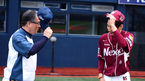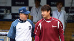 [OSEN=창원, 지형준 기자] 3일 오후 창원시 마산구장에서 '2014 한국야쿠르트 세븐 프로야구' NC 다이노스와 넥센 히어로즈의 경기가 열린다. 경기에 앞서 넥센 송신영이 NC 김경문 감독을 찾아 인사를 하고 있다. 2위 NC와 4위 넥센