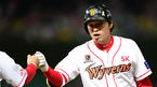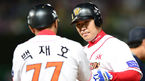 [OSEN=인천, 이대선 기자] 4일 오후 인천 문학야구장에서 '2014 한국야쿠르트 세븐 프로야구' SK 와이번스와 두산 베어스의 경기가 열렸다. 5회말 1사 1,3루에서 SK 이재원이 중전 적시타를 치고 백재호 코치와 하이파이브를 하고 있