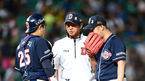 [OSEN=인천, 이대선 기자] 4일 오후 인천 문학야구장에서 '2014 한국야쿠르트 세븐 프로야구' SK 와이번스와 두산 베어스의 경기가 열렸다. 5회말 1사 만루에서 마운드를 방문한 두산 권명철 코치가 유희관과 이야기를 나누고 있다.