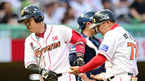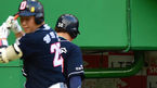 [OSEN=인천, 이대선 기자] 4일 오후 인천 문학야구장에서 '2014 한국야쿠르트 세븐 프로야구' SK 와이번스와 두산 베어스의 경기가 열렸다. 3회초 1,2루 두산 홍성흔의 좌전 적시타때 홈을 밟은 2루주자 김현수가 더그아웃에서 송일