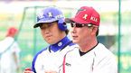 [OSEN=대구, 최규한 기자] 4일 오후 대구구장에서 열리는 '2014 한국야쿠르트 세븐 프로야구' 삼성 라이온즈와 KIA 타이거즈의 경기를 앞두고 KIA 투수 양현종과 한대화 코치가 방망이를 들고 스윙을 하고 있다. 삼성은 릭 밴덴헐크,