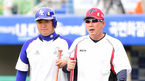 [OSEN=대구, 최규한 기자] 4일 오후 대구구장에서 열리는 '2014 한국야쿠르트 세븐 프로야구' 삼성 라이온즈와 KIA 타이거즈의 경기를 앞두고 KIA 한대화 코치와 삼성 박석민이 인사를 나누고 있다. 삼성은 릭 밴덴헐크, KIA는 한승혁