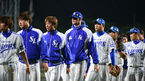 [OSEN=인천, 이대선 기자] 4일 오후 인천 문학야구장에서 '2014 한국야쿠르트 세븐 프로야구' SK 와이번스와 두산 베어스의 경기가 열렸다. 7회초 2사 만루에서 두산 양의지가 우전 2타점 적시타를 치고 전상렬 코치와 하이파이브를