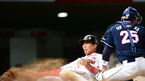 [OSEN=인천, 민경훈 기자] 5일 오후 인천 문학야구장에서 열린 2014 한국야쿠르트 세븐 프로야구 SK 와이번스와 두산베어스의 경기, 8회말 무사 주자 2루 SK 나주환의 좌익수 앞 1타점 적시타때 한동민이 홈으로 몸을 날리며 세이프