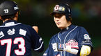 [OSEN=인천, 민경훈 기자] 5일 오후 인천 문학야구장에서 열린 2014 한국야쿠르트 세븐 프로야구 SK 와이번스와 두산베어스의 경기, 5회초 1사 주자 2,3루 두산 이원석이 좌익수 앞 동점 1타점 적시타를 날린 후 1루에서 전상렬 코치