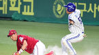 [OSEN=인천, 민경훈 기자] 5일 오후 인천 문학야구장에서 열린 2014 한국야쿠르트 세븐 프로야구 SK 와이번스와 두산베어스의 경기, 4회말 2사 주자 1루 SK 임훈 타석에서 1루 주자 조동화가 2루 도루에 실패하고 있다. 상대 마무리를