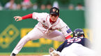 [OSEN=인천, 민경훈 기자] 5일 오후 인천 문학야구장에서 열린 2014 한국야쿠르트 세븐 프로야구 SK 와이번스와 두산베어스의 경기, 3회초 2사 주자 1루 두산 정수빈 타석에서 1루 주자 김재호가 2루 도루를 시도, SK 유격수 김성현에