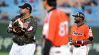 [OSEN=부산, 지형준 기자] 5일 오후 부산 사직구장에서 '2014 한국야쿠르트 세븐 프로야구' 롯데 자이언츠와 한화 이글스의 경기가 열린다. 2회초 1사에서 한화 피에가 우전안타를 날리고 롯데 히메네스와 인사를 나누며 미소짓고