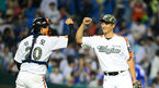 [OSEN=목동, 최규한 기자] 6일 오후 서울 목동구장에서 '2014 한국야쿠르트 세븐 프로야구' 넥센 히어로즈와 두산 베어스의 경기가 열렸다. 7회말 넥센 공격 2사 주자없는 상황 강정호가 좌월 솔로포를 날리고 염경엽 감독과 인사를