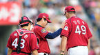 [OSEN=잠실, 민경훈 기자] 6일 오후 서울 잠실야구장에서 열린 2014 한국야쿠르트 세븐 프로야구 LG 트윈스와 KIA 타이거즈의 경기, 6회말 2사 주자 1,3루 LG 김용의 타석에서 KIA 김진우가 교체되고 있다. 이 날 경기에서 LG와 KIA는 각