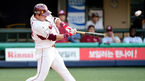 [OSEN=대전, 지형준 기자] 6일 오후 대전 한밭야구장에서 '2014 한국야쿠르트 세븐 프로야구' 한화 이글스와 삼성 라이온즈의 경기가 열렸다. 5회말 2사 2루에서 한화 김태균이 투런포를 날리고 있다. SK에서 한화로 이적한 베테랑